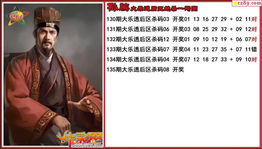 首页 > 大乐透预测 > 大乐透135期孙膑后区绝杀一码图