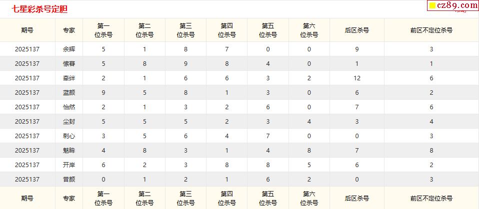 七星彩137期 彩宝贝专家直选杀号预测图表